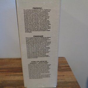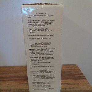 Hello. This is a Red Floral Geometric Graph N' Latch Rug Kit by M.C.G. Textiles that is new and sealed in the box. I bought this a very long time ago. The finished size of this rug is 27" x 20". Kit includes Graph N' Latch canvas with blue lined grid, full color illustrated chart, 100% acrylic pre-cut yarn and complete instructions. It does not mention that it includes the latch hook tool. Please see pictures for more information. Nice kit. Smoke free home.