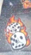 Black denim shorts featuring graphic designs of dice, flames, and a cartoon character. Embellished with diamond studs for a bold look.