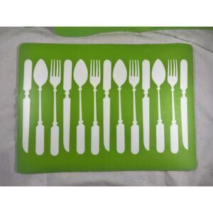 Graphic Cutlery Flatware Print Placemats 18 x 13 Lime Green 1960s 1970s Set of 4