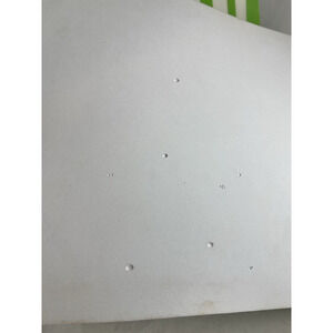 They are showing some signs of use and age. There are some light stubborn random discolorations, a dent in the top of one mat and the top green portions of a couple placemats are beginning to separate from the foam centers, as shown. Any attempt at repair/regluing is being left to customer.