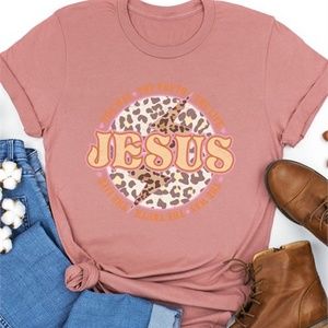 Graphic Jesus Tshirt Leopard and Lightning Bolt Tee