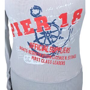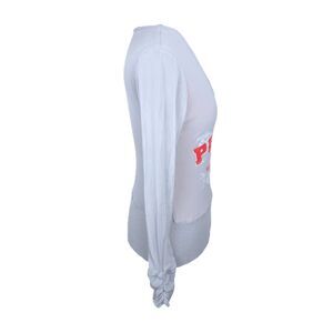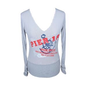 Graphic long sleeve top with sheer detailing and back. Good condition. No brand or size tags, best fits a size M.