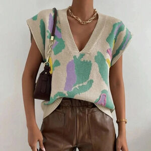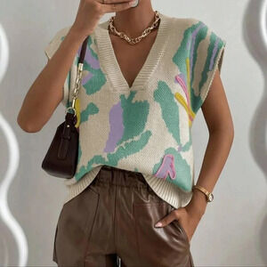 Graphic Pattern Batwing Sleeve Sweater Vest