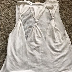 White sleeveless shirt, with floral "LA" on front and cut out back, fitted