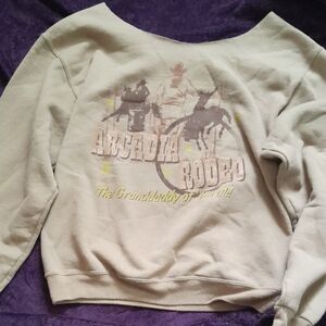 Cozy sweatshirt featuring a rodeo graphic. Light gray color.