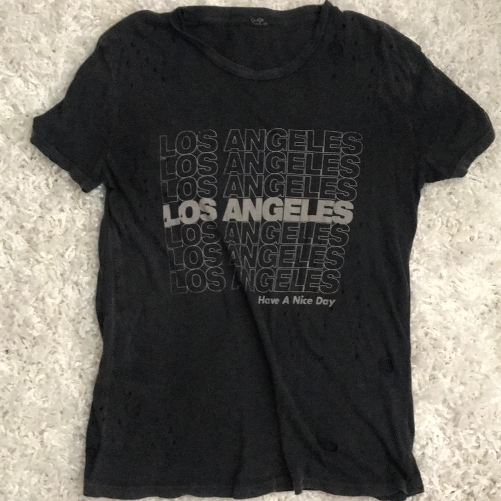 “Worn” looking graphic t-shirt with holes.