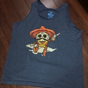 Graphic Tank Top with Skeleton Design - Cabo Mexico Tank - Mens Large Blue Top
