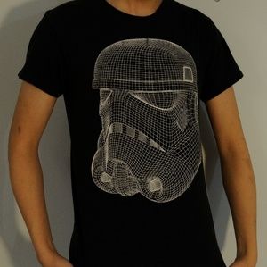 image of grid-textured stormtrooper head. original stormtrooper design. from before disney bought star wars.
