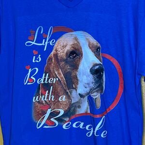 Graphic Tee Blue Life Is Better With a Beagle V-neck L New