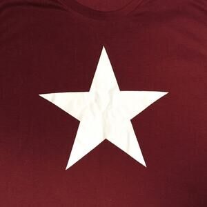 Graphic Tee Star T-Shirt Maroon White Short Sleeve Unisex M Women's or Men's Top