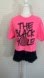 Graphic Tee THE BLACK HOLE Raw Hem Fluorescent Pink Black Medium M
