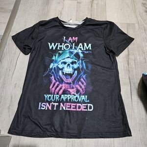 Short Sleeve For Spring & Summer, Casual Skull & Letter Print Crew Neck T-shirt, Women's Clothing Tee Tee For Adult, Men, Women, Teen, Teenager, Adolescent, Youth