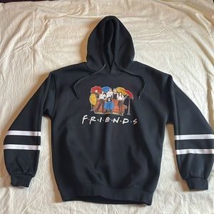 Graphic hoodie stylized FRIENDS group pose black long sleeves Medium