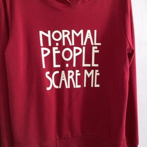 Graphic, long sleeve hoodie, size medium (normal people scare me)