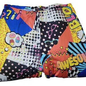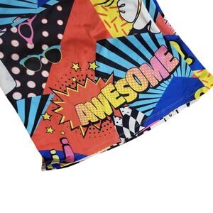 All over comic book print with fine bold colors and street style. Vibe stretchy waistband all day. Comfort relaxed boot, cut boot, leg. Flair style pants lightweight and perfect for casual wear lounging or making a statement