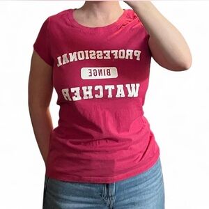 Fun and comfy pinkish red graphic tee with bold white lettering and a standout “BINGE” design in the center. Perfect for cozy nights in or casual outings. Ideal for anyone who loves TV marathons or streaming their favorite shows in style! Fits more like a medium
