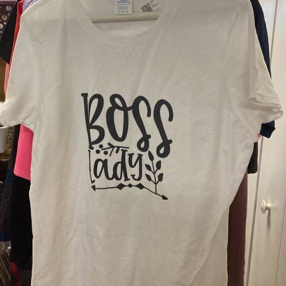 Embrace your inner leader with our 'Boss Lady' graphic t-shirt. This chic and empowering tee is designed for anyone who takes charge and paves their own way in style. Made with a soft and breathable cotton blend, this t-shirt features a classic crew neck and a comfortable relaxed fit. The bold 'Boss Lady' script is prominently displayed across the front, complemented by a delicate botanical motif that adds a touch of femininity. In a versatile white color, it's easy to pair with jeans, skirts, or blazers for a casual office look or a weekend outfit. Available in multiple sizes, it is both machine washable and durable, ensuring it remains a staple in your wardrobe for seasons to come. Step out with confidence and let the world know who's boss!