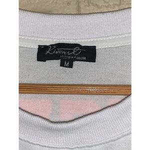 White bright Graphic MSICROW lightweight Sweater. Slouchy Fit. Gently used condition. Size Medium