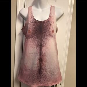 Graphic Sleeveless Tank Hair Chest Design Top Large