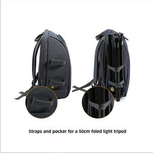 Great condition, paid $54 for this backpack. Missing one velcro piece on the inside that can be rearranged and styled to fit your camera and accessories. Great as a school backpack as it has space for an iPad or laptop. Water resistant material.