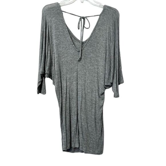 Grass Collection Heather Double V Dolman Sleeve Lightweight Tunic Sweater Top Gray Small