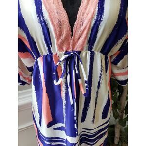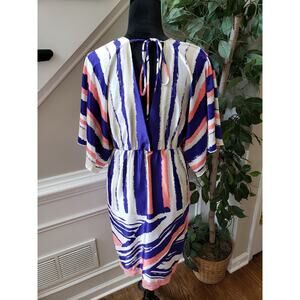 Grass Collection Shift Dress Womens Large Blue White Kimono Sleeve V Neck