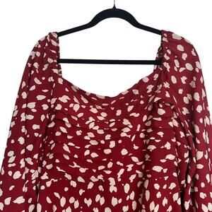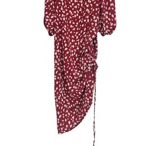 Grass Fields Plus Size 20 Off Shoulder Puff Sleeve Ruched Leg Midi Dress Red Wht