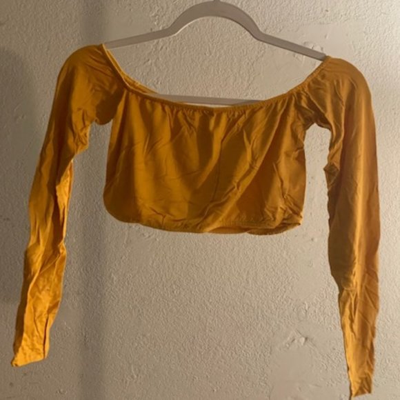 This is a new in manufacturers original plastic bag Women's Off Shoulder Yellow Long Sleeve Crop Top in size 14 made by Grass Fields. It has a retail value of $30.