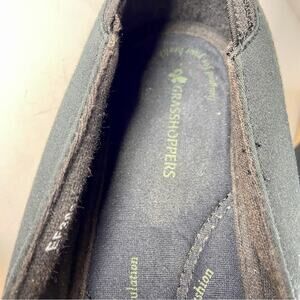 Stylish black flats with a comfortable tan sole. Perfect for everyday wear.