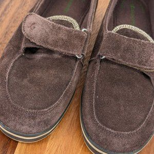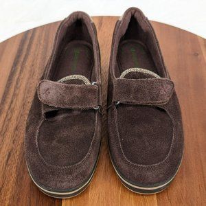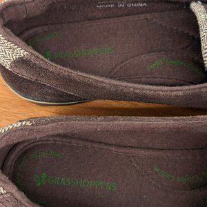 Grasshoppers Loafers 6 Chocolate Brown Suede Metallic Chevron Hook & Loop Close