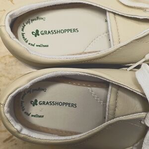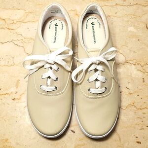 Grasshoppers | Womens Tan Leather Lace-up Sneakers | Like new without box; these shoes were never worn. Minor condition note: a couple of discoloration areas on interior side related to storage (see last photo) |
