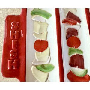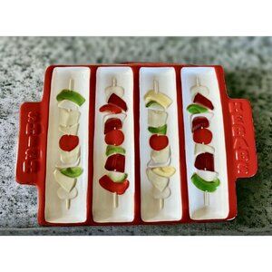 Grassland Roads Platter Party Shish Kebab Vintage 14” Ceramic Decor Red Grilling