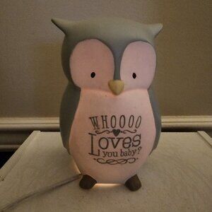 Grasslands Road owl Whoooo Loves you baby desktop light NWT. Owl lights up for a nice soft night light, has switch on cord. Size is about 8" x 6", ceramic, made in China. Perfect for a baby's room or a cute accent for your desktop or dresser!