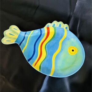 Grasslands Roads Figural Fish Seeving Plate Ceramic Colorful Blue Red Yellow