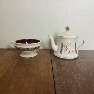 Grasslands Roads Holiday Garland Ceramic Teapot with lid and Tea cup Set