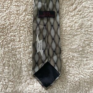 Designer silk tie showcases geometric patterns and abstract themes in vibrant multicolor hues.