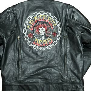 Rock a legendary look with this Grateful Dead black leather biker jacket!