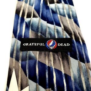 Grateful Dead Crazy Fingers Third Set Blue Gray Print Short Wide Silk Tie