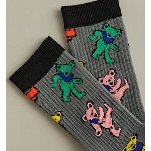 Classic crew socks with a ribbed ankle cuff & contrast toe and heel panels topped with a Grateful Dead pattern allover.