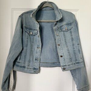 Grateful Dead denim jacket featuring embroidered dancing skeletons and statement fringe detailing — the perfect mix of rock ‘n’ roll and boho western style.