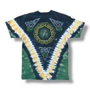 Grateful Dead Liquid Blue Shamrock Irish T-Shirt Tie Dye Green Medium Vtg Y2K