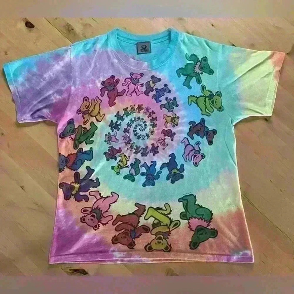 Grateful Dead Liquid Blue Tie Dye Dancing Bear Spiral 〰️ Vintage 1995 T-Shirt