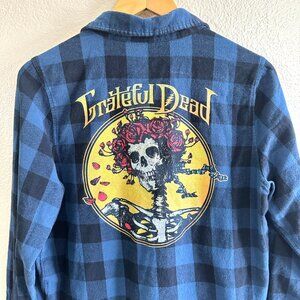 Grateful Dead Long Sleeve Checkered Graphic Button-Down Shirt Flannel Women's S, made of 100% Cotton.
