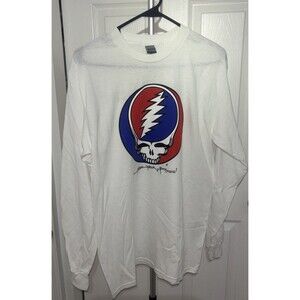 This X-Large Grateful Dead long sleeve t-shirt is a stylish and comfortable addition to any music fan's wardrobe. Made from soft cotton material, this white t-shirt features the iconic Grateful Dead logo on the front, perfect for showing off your love for the band. With a classic crew neck and regular fit, this shirt is suitable for all seasons and can be easily machine washed for care. Show off your appreciation for the Grateful Dead with this timeless and versatile piece of apparel.