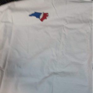 Which image is the front and which the back? Looks like the large image is on the front, but then why would you have the small one on the back & off center??? Please let me know exactly which image is on front, and which on back (these photos aren't good and don't show the entire shirt front & back in any of these photos)