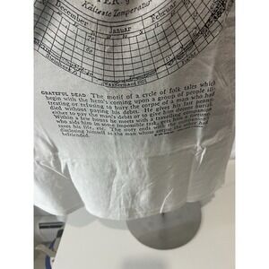 This is a vintage Grateful Dead T-shirt featuring a skull design with a world map background from the 1990s. It is a size medium with a round neckline and single stitch detailing. The shirt is white in color and carries a retro theme, reflecting the bohemian and rock music vibes associated with the band. Brand new never worn never washed.