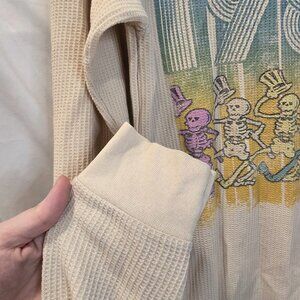 Grateful Dead Thermal Long Sleeve Shirt Off White Medium-Large Dancing Skeletons