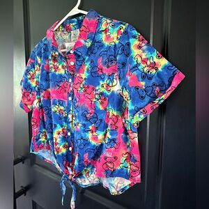 Grateful Dead Tie Dye Crop Tie Front Button Down "NWT"