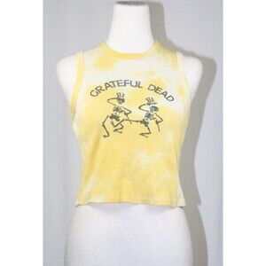 Grateful Dead Yellow Tie Dye Tank Top Size Large Stretchy Cropped Top