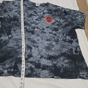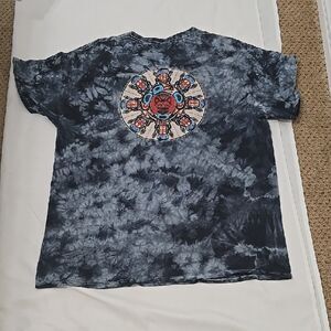 Grateful Dead short sleeve tee. Tie-dye pattern. Features a red emblem on the chest.